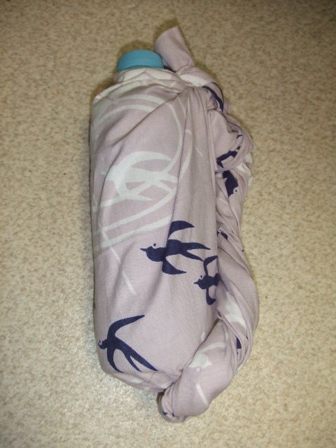 ペットボトルケースに早変わりの手ぬぐいちゃん。しかもかわいいつばめ柄。今の季節にぴったりですね~。
