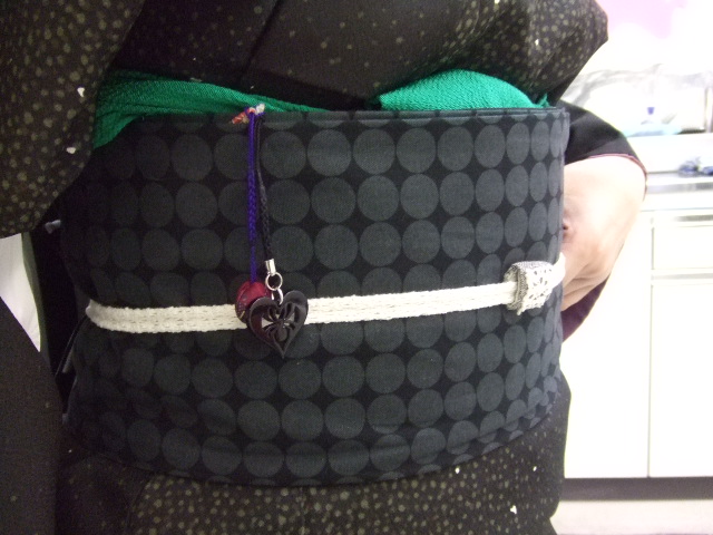 後楽園「さと和」さんでのフリマも六月で6回目。 さて、もういっちょ。 さて、最近「らしさ」にこだわってる私・・・。 リバーシブルなのです。 たかちよ的には緑の帯締めをあわせてみました。このあたりが人それぞれの個性なのですよ~。 で、帯かざり・・・わかります?蜘蛛ちゃんなのです。 いや~帯の蜘蛛チャンこんなとこに来ちゃったんですね~。 ダイダイ、満足なコーディネイトでした!! さてこんな素敵な帯、「私もオーダーしたいわ~。」 なんてかたは、こちら 贋魚堂 http://niseuodou.cocolog-nifty.com/ さて、金継ぎ教室の当日、欠けたとっくりをそっと抱え、行って参りました。 |